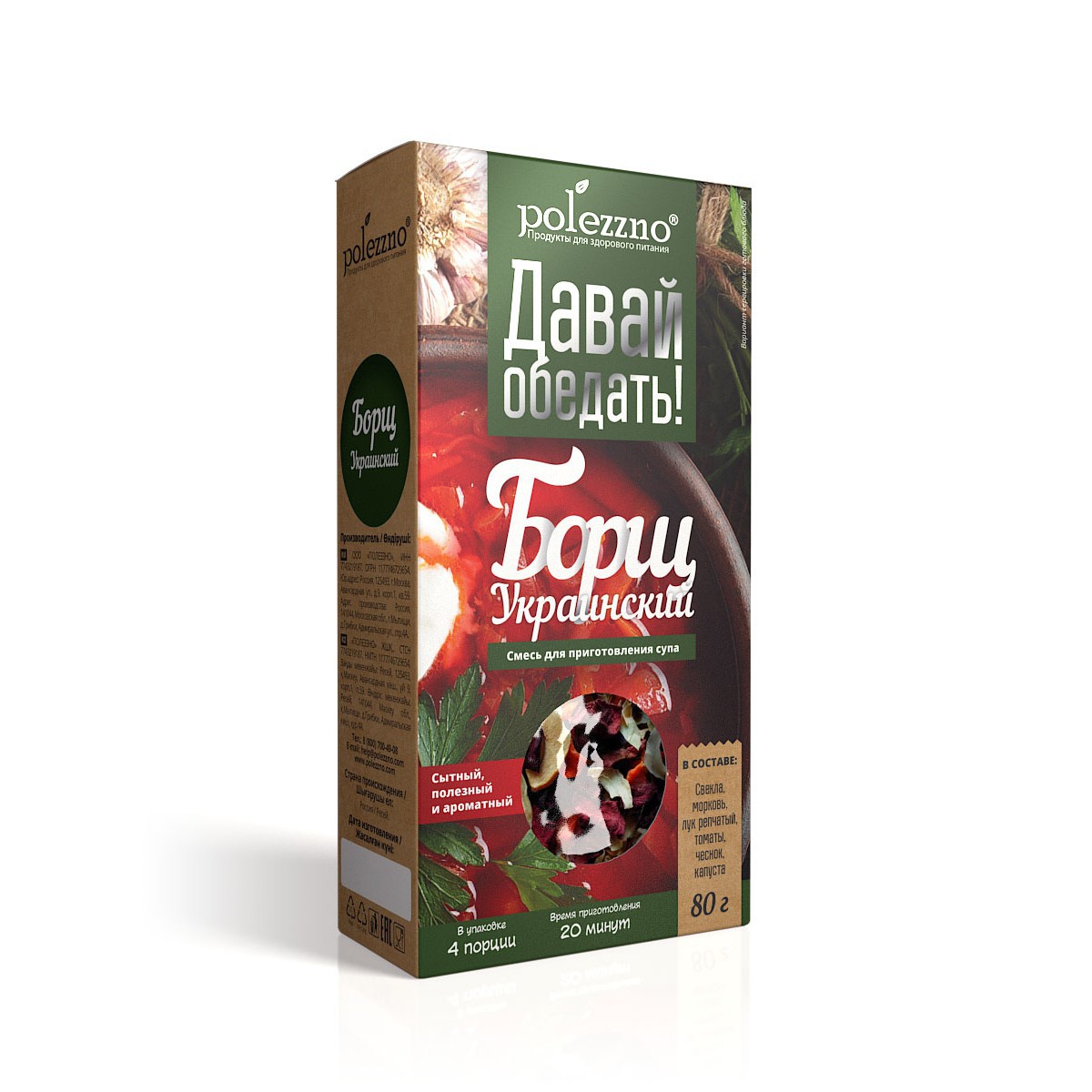 Смеси для приготовления супов POLEZZNO «Давай обедать» — это яркий ароматный букет приправ и специй в уникальных рецептах со всего мира. Просто вскипятите воду, добавьте смесь для супа и отдыхайте! Скоро сытный, вкусный и полезный суп будет готов!