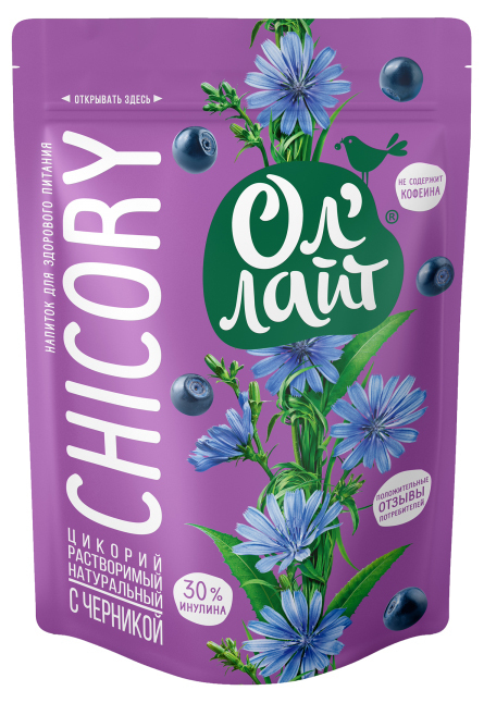 Цикорий c экстрактом ягод черники - горячий напиток для здорового питания, изготовленный из 100% корней цикория, выращенных и обработанных по уникальной технологии производства.