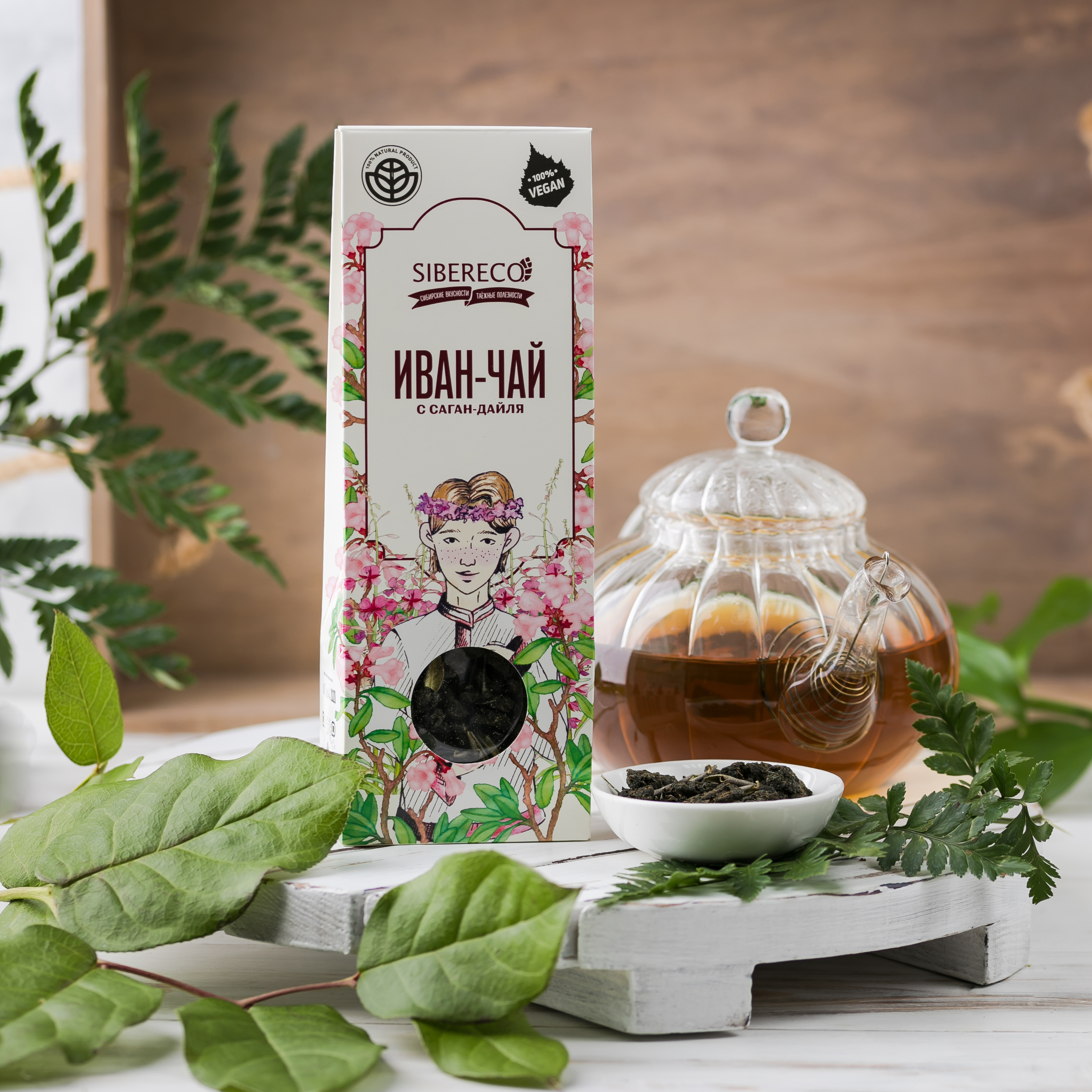 Состав: Иван-чай листовой ферментированный (кипрей узколистный), саган-дайля (трава).