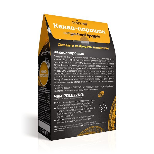 Какао-порошок POLEZZNO не проходит щелочную обработку, является неалкализованным и натуральным.