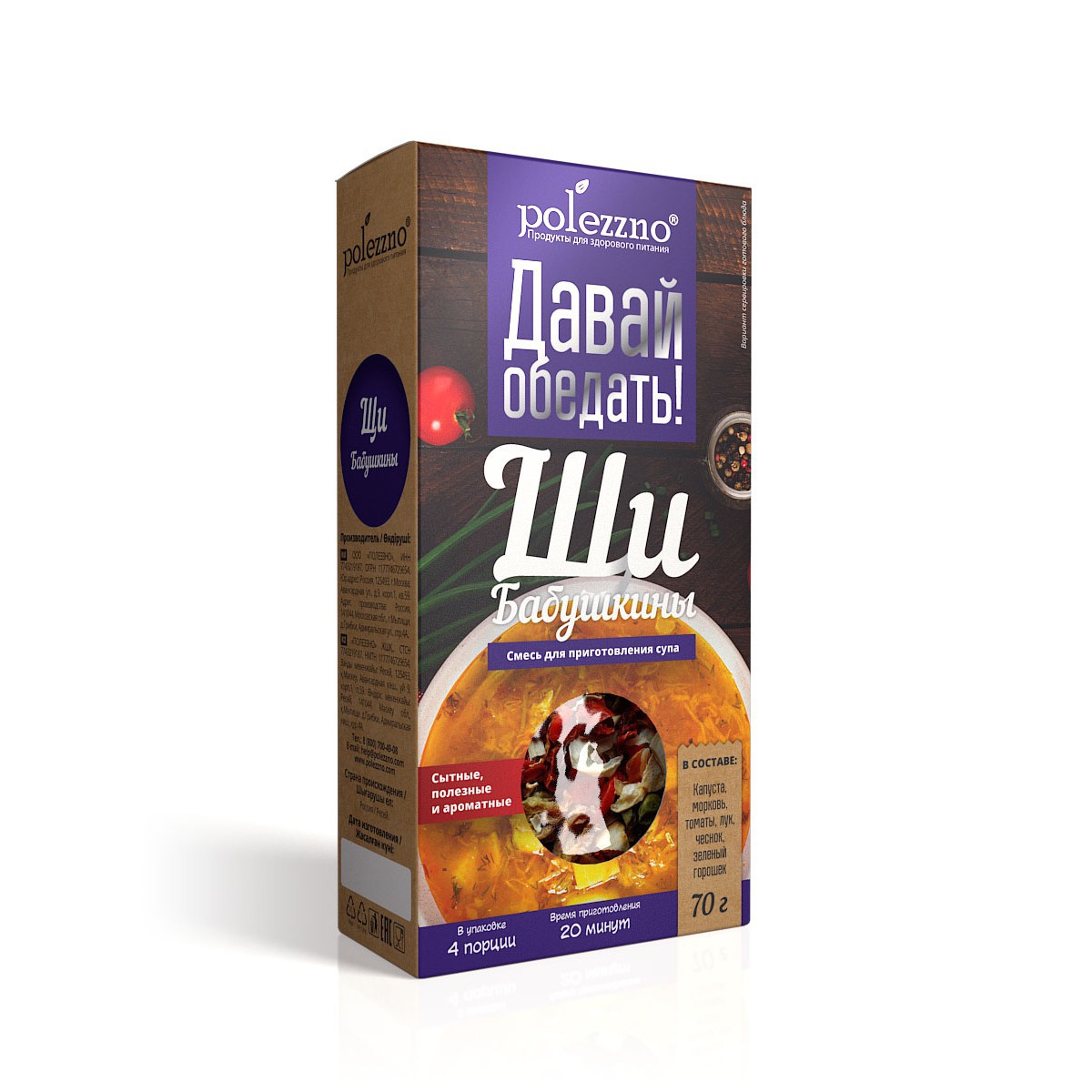 Смеси для приготовления супов POLEZZNO «Давай обедать» — это яркий ароматный букет приправ и специй в уникальных рецептах со всего мира. Просто вскипятите воду, добавьте смесь для супа и отдыхайте! Скоро сытный, вкусный и полезный суп будет готов!
