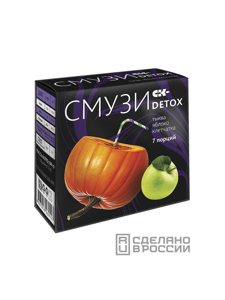 Смузи «DETOX» тыква, яблоко не содержит сахара, консервантов, химических ароматизаторов и красителей. При беременности и лактации перед применением проконсультируйтесь с врачом.