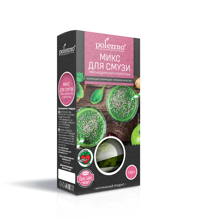 Густые вкусные и полезные напитки из ягод и овощей, смузи, станут еще полезнее, если вы добавите в них столовую ложку смеси для смузи POLEZZNO. Идеальная пропорция водорослей и проростков зарядит энергией и обогатит завтрак натуральными легкоусваиваемыми витаминами и минералами. Не зря компоненты смеси называют суперфудами. Каждый из них «знаменит» за свои рекордные показатели.