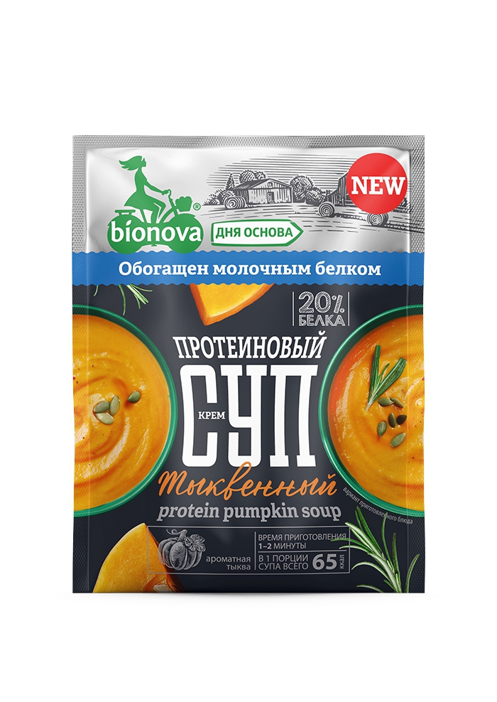 Натуральный протеиновый тыквенный крем-cуп Bionova® с высоким содержанием белка, низким содержанием жира и натуральными ингредиентами специально разработаны для людей, ведущих активный образ жизни, идущих в ногу со временем, но, несмотря на высокий жизненный ритм, следящих за своим питанием.