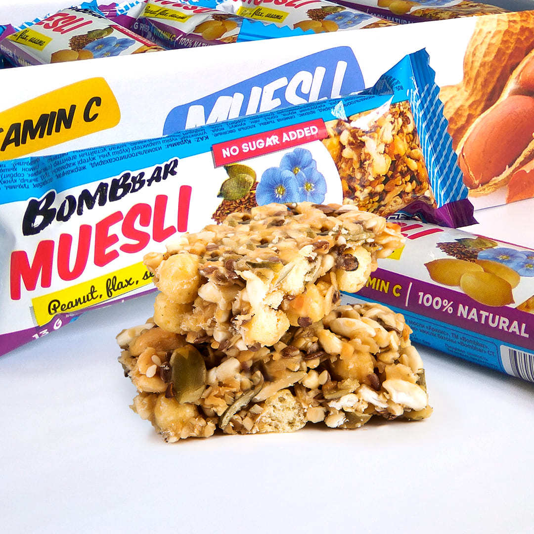 Мюсли Bombbar подходят для перекуса в дороге, в офисе, в школе, после тренировки, на работе или использовать как десерт к чаю.