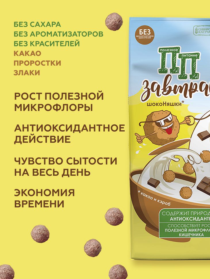 «Сибирские снеки» «ПП» Завтрак, ШокоНяшки не содержат сахара, консервантов, химических ароматизаторов и красителей. При беременности и лактации перед применением проконсультируйтесь с лечащим врачом.