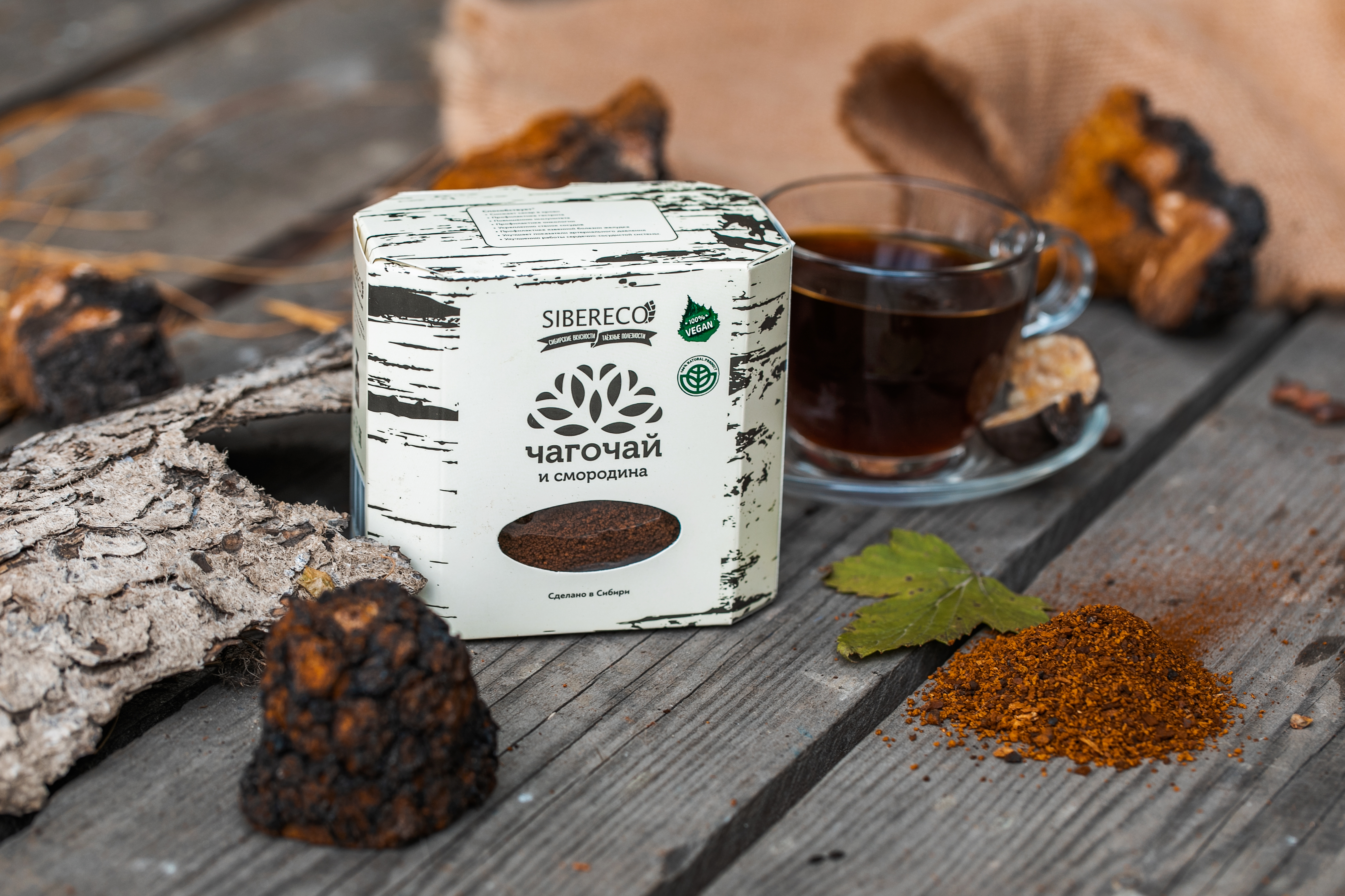 Состав: гриб берёзовый чага, лист чёрной смородины.