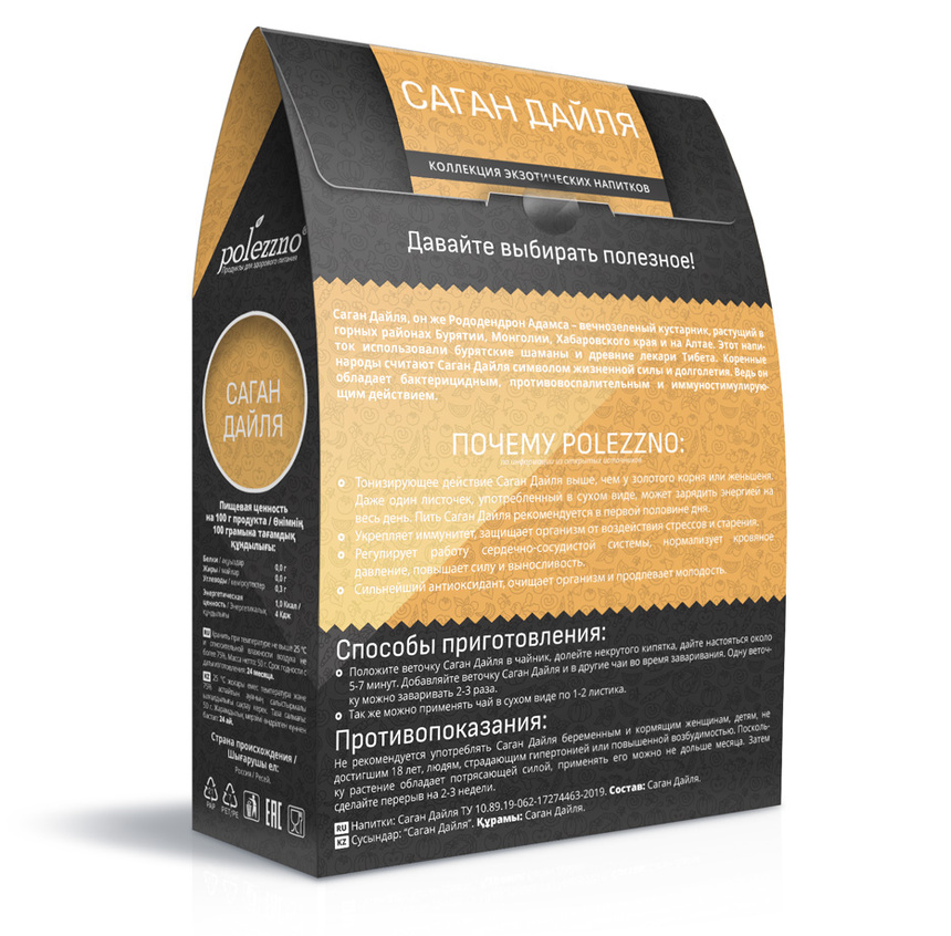 Чай Саган Дайля, он же Рододендрон Адамса – вечнозеленый кустарник, растущий в горных районах Бурятии, Монголии, Хабаровского края и на Алтае. Этот напиток использовали бурятские шаманы и древние лекари Тибета. Коренные народы считают Саган Дайля символом жизненной силы и долголетия. Ведь он обладает бактерицидным, антибактериальным, противовоспалительным и иммуностимулирующим действием.