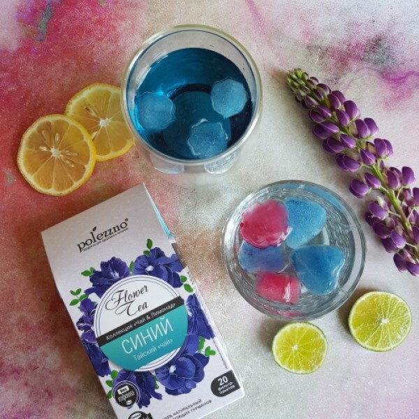 Отличная идея для приготовления лимонада. Заварите напиток кипятком в небольшой емкости из расчета 3-4 пакетика на 1 литр воды. Разбавьте холодной водой. Перелейте в графин или лимонадник и украсьте веточками мяты. Если добавить в напиток дольку лимона, он изменит цвет с глубокого синего на фиолетовый. Натуральный полезный лимонад готов!