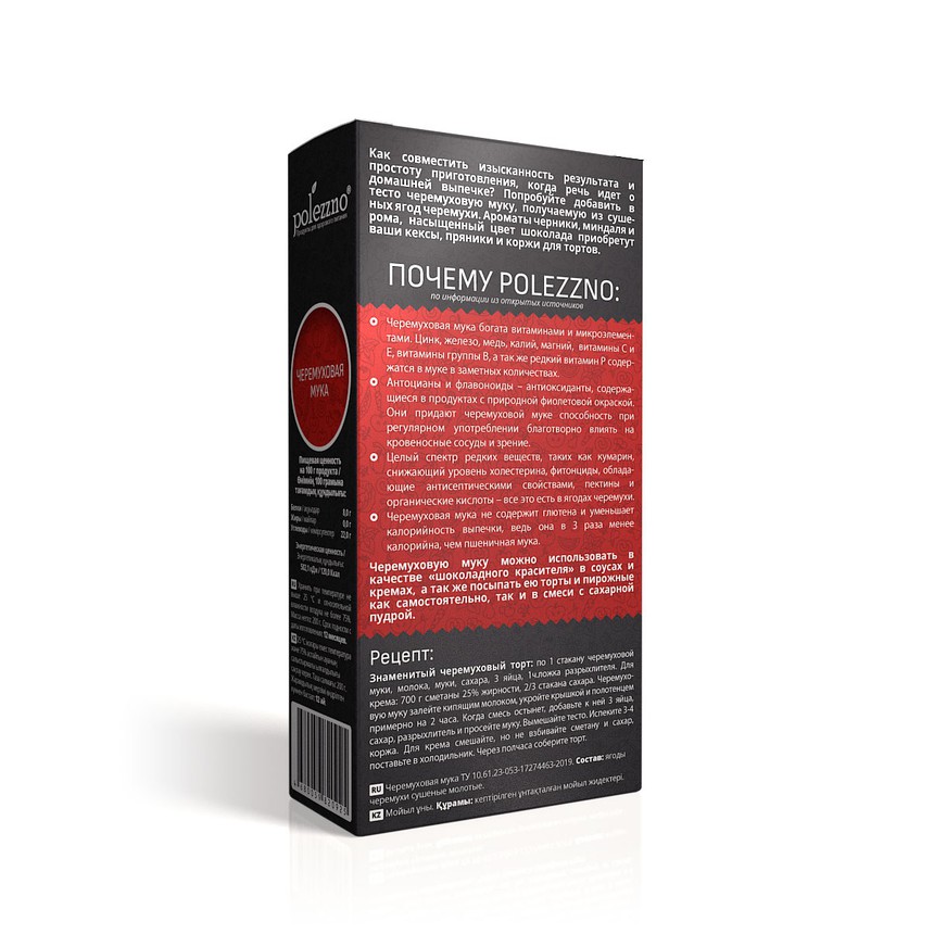 Черемуховую муку можно использовать в качестве «шоколадного красителя» в соусах и кремах, посыпать ею торты и пирожные как самостоятельно, так и в смеси с сахарной пудрой.
