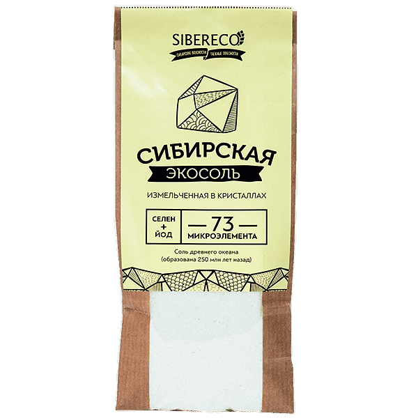 Сибирская соль – это естественная пищевая соль, высушенная без нагрева и химического вмешательства, содержит почти всю таблицу Менделеева. Чистая кристаллическая сибирская эко-соль не подвергалась термической обработке, а значит, сохранила все полезные свойства. По результатам лабораторных исследований Института природных ресурсов Научно-образовательного центра «Вода» при «НИ Томского политехнического университета» в Сибирской соли обнаружено 73 макро, микро и ультра макро-элемента, также в ней большое количество селена, кальция, магния и других элементов.