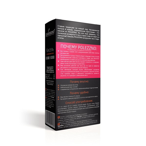 Старые традиции на новый лад. Несомненная польза в новом, современном прочтении – это кисели от POLEZZNO. Вы еще не уверены, что полезное не вкусно? А все старое надо оставить в прошлом? Кисель POLEZZNO разрушает все стереотипы.