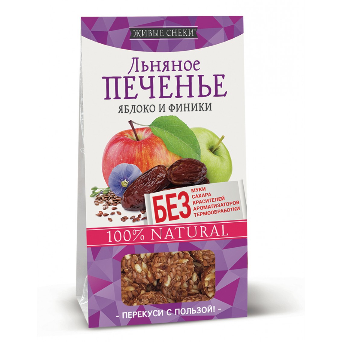 Печенье изготовлено из сырых фруктов и пророщенного льна, БЕЗ САХАРА, сахарозаменителей и подсластителей.