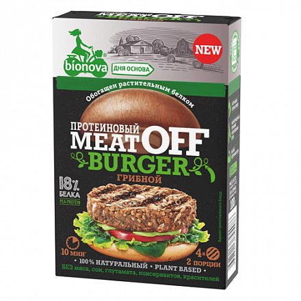 Овощной бургер Bionova® грибной — очень вкусное, питательное и сбалансированное блюдо, легкое в приготовлении. В их составе только натуральные сушеные овощи, злаки, специи и пряности. Содержит 18% легкоусвояемого горохового белка, который очень близок по содержанию незаменимых аминокислот и степени усвоения к белкам животного происхождения.