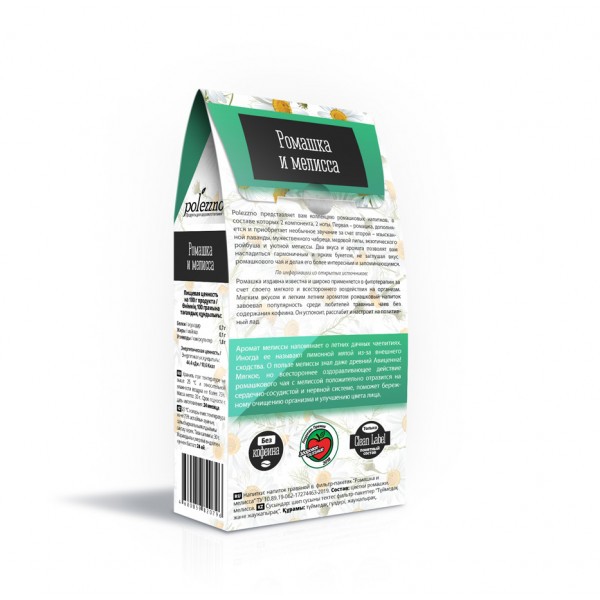 | Состав | Цветки ромашки, мелисса сушеная |