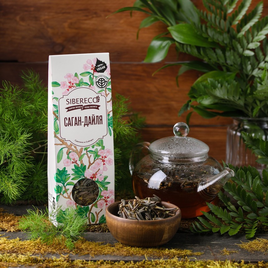 Способ приготовления: на чайник 500 мл достаточно одной столовой ложки. Заваривайте горячей кипячёной водой температурой от +80°C до +90 °С, дайте настояться 5 минут. Саган-дайля очень полезно и вкусно смешивать с зелёным и чёрным сортами чая или добавлять в напиток из трав по вкусу.