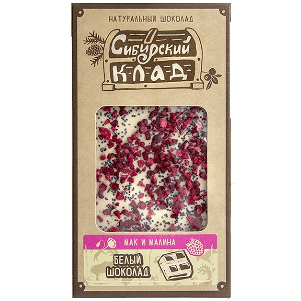 Необыкновенное сочетание вкуса белого шоколада "Сибирский Клад", мака и ароматной малины. Преимуществом сублимированных ягод является 100% сохранение полезных свойств натурального продукта.