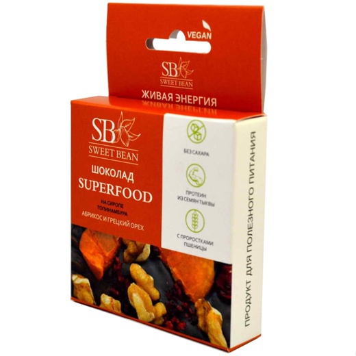 Шоколад не содержит сахара. Топинамбур - источник природного инулина. Сироп топинамбура рекомендован, как общеукрепляющее средство, положительно влияющее на работоспособность, переносимость физических и умственных нагрузок.