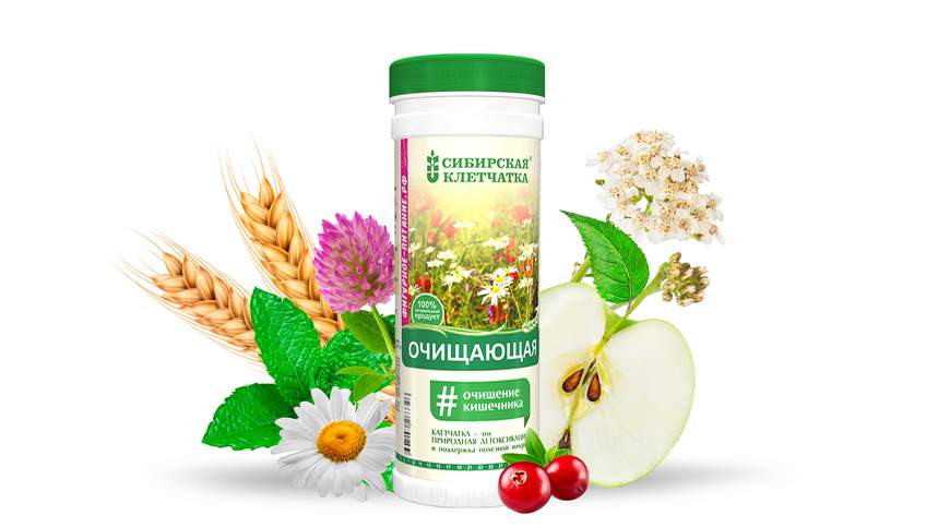 В Сибирской клетчатке «Очищающая» оптимальное сочетание клетчатки и полезных трав. Она снижает аппетит, уменьшает уровень холестерина в крови, способствует снижению веса и уменьшению объемов, эффективно и безопасно очищает кишечник от шлаков и токсинов. 100% натуральный продукт.