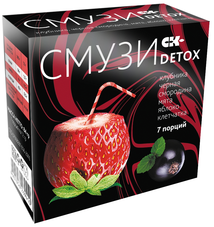 Смузи «DETOX» мята, клубника не содержит сахара, консервантов, химических ароматизаторов и красителей. При беременности и лактации перед применением проконсультируйтесь с врачом.