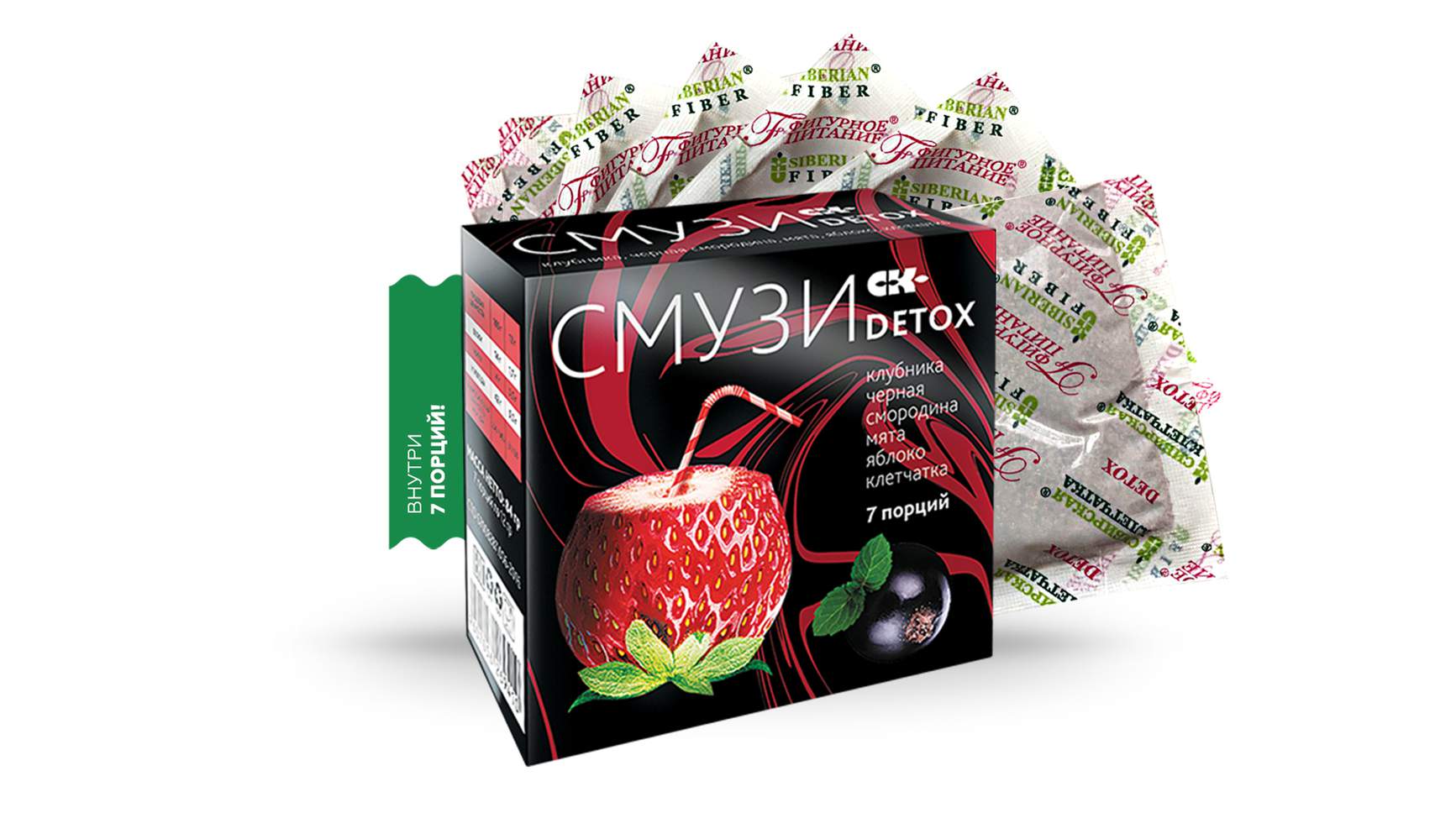 Уникальная формула детокс эффекта это три вида клетчатки, усиленные Сибирскими травами, ягодами и яблоком. Первый, натуральный смузи в виде сухой основы для приготовления детокс коктейля. Семена Чиа обогащают смузи Омега-3, ягода - витаминами, а клетчатка - главный очищающий компонент. Полностью натуральный, без добавления ароматизаторов, сахаров и консервантов. Смузи расфасован в 7 порционных пакетов. Способ употребления: 1-2 раза в день до еды, или вместо нее. Содержимое пакета размещать с жидкостью 200-250 мл. Для раскрытия вкуса ягоды при разведении в воде настоять 5 мин. При разведении в кисломолочных напитках, растительном молоке 20 мин. По желанию добавить в смузи мёд, сахар. Противопоказания: непереносимость ингредиентов.