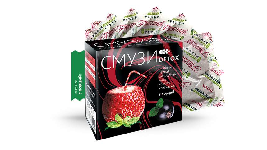 Уникальная формула детокс эффекта это три вида клетчатки, усиленные Сибирскими травами, ягодами и яблоком. Первый, натуральный смузи в виде сухой основы для приготовления детокс коктейля. Семена Чиа обогащают смузи Омега-3, ягода - витаминами, а клетчатка - главный очищающий компонент. Полностью натуральный, без добавления ароматизаторов, сахаров и консервантов. Смузи расфасован в 7 порционных пакетов. Способ употребления: 1-2 раза в день до еды, или вместо нее. Содержимое пакета размещать с жидкостью 200-250 мл. Для раскрытия вкуса ягоды при разведении в воде настоять 5 мин. При разведении в кисломолочных напитках, растительном молоке 20 мин. По желанию добавить в смузи мёд, сахар. Противопоказания: непереносимость ингредиентов.